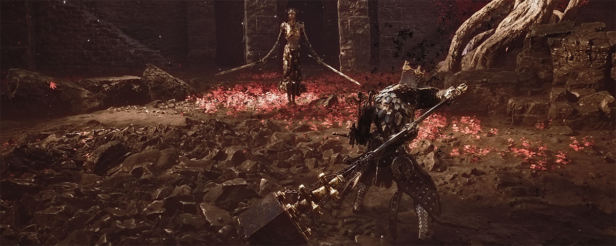 Skepsis, dass „Mortal Shell 2“ Gefahr läuft, zu sehr die Spielformel eines Souls-like zu verwässern, schleicht sich spätestens dann ein, wenn neben den klassisch bekannten Kampfelementen wie Paraden, Rückenschläge und elementare Waffenverstärkungen summativ weitere Erleichterung implementiert wird. Zum einen wird Anzeige dem Kernspielprinzip angehängt, die sich für jeden Gegner jeweils durch wiederholte Treffer füllt, um diese schlussendlich zu betäuben. Zum anderen folgen zusätzliche Spielerleichterungen, weil Bosskämpfe durch die temporäre Zerstörung der jeweils verwendeten Rüstungsschale nicht beendet sind. Stattdessen wird die Spielfigur in die Grundform des Harbingers zurückversetzt und kann weiterkämpfen. Unter bestimmten Umständen scheint es möglich zu sein, die verlorene Shell wiederherzustellen und erneut einzusetzen. Es deutet darauf hin, dass ein endgültiger Tod erst dann eintritt, wenn sowohl die aktive Shell als auch die Grundform besiegt wurden. Positiv formuliert kann diese Mechanik als zusätzliche taktische Tiefe verargumentiert werden. Kritisch betrachtet könnte dadurch der sprichwörtliche Tanz auf Messerschneide, der den Spieler in Konzentration und Anspannung hält, zu sehr verschwimmen.